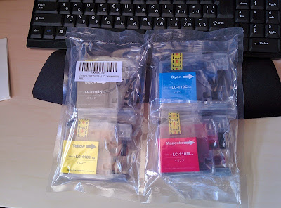 っで、昨日急遽amazonで注文してた「【Amazon認定 FFPパッケージ】 ブラザー BROTHER LC110-4PK 4色セット 互換インクタンク 【ICチップ付】 対応 950円也が本日届いたので早速ビルトイン!